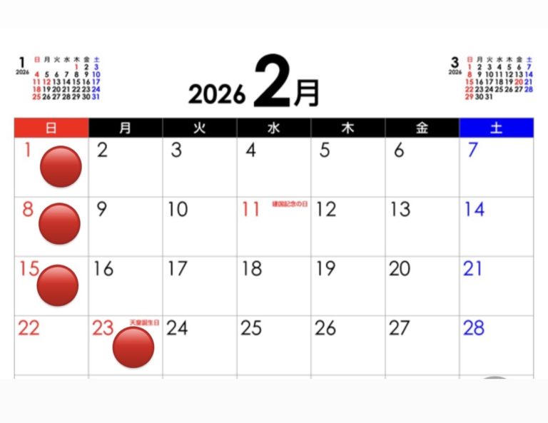 2月のお休みです。