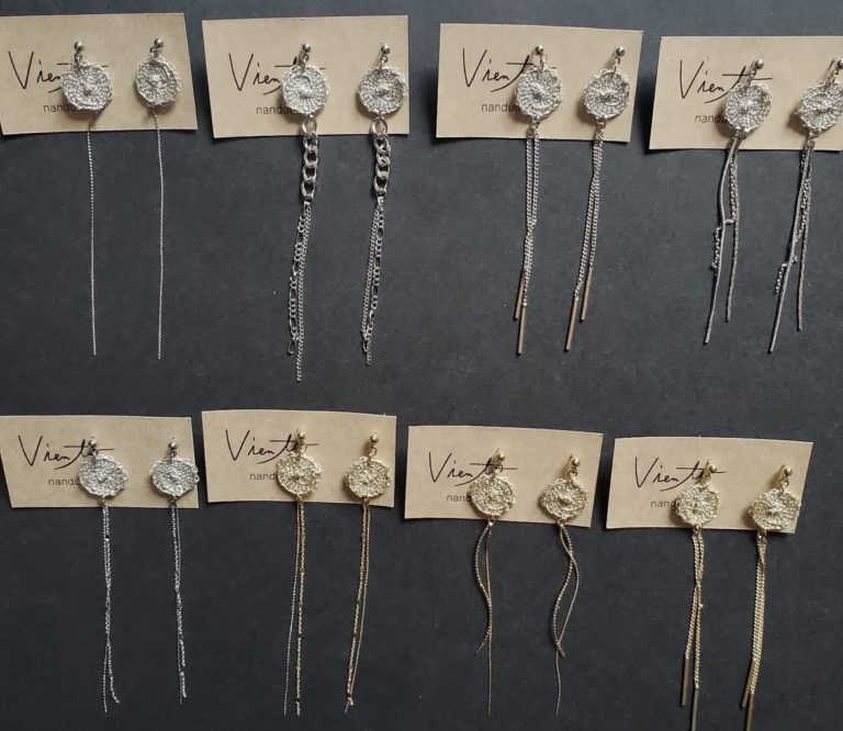 細い糸を針で編むという唯一の手法で軽やかなアクセサリー等を制作しています。