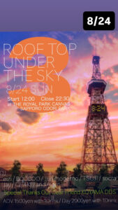昨年より参加させて頂いてますザ ロイヤルパーク キャンバス ホテル札幌大通公園 @canvas_rooftop 屋上でGOOD PARTY‼︎